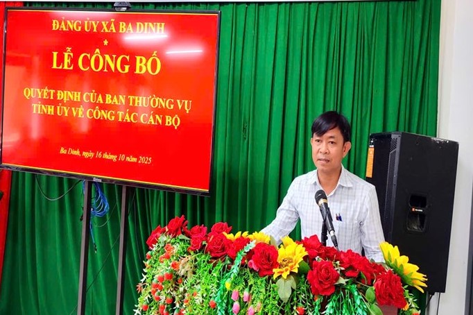 Buổi công bố quyết định diễn ra trong không khí trang trọng, đoàn kết, thể hiện sự quan tâm, tin tưởng của Ban Thường vụ Tỉnh ủy đối với công tác cán bộ ở cơ sở. Đây cũng là động lực quan trọng để Đảng bộ xã Ba Dinh tiếp tục nâng cao chất lượng công tác xây dựng Đảng, đáp ứng yêu cầu nhiệm vụ trong giai đoạn mới./.