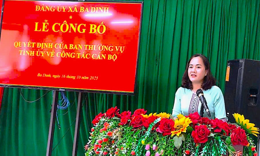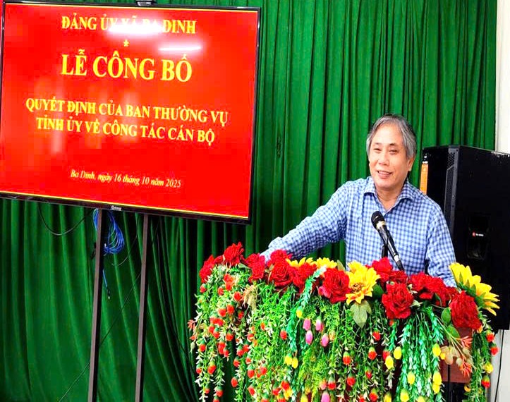 Chiều ngày 16/10/2025, Ban Thường vụ Đảng ủy xã Ba Dinh tổ chức Hội nghị công bố Quyết định của Ban Thường vụ Tỉnh ủy về công tác cán bộ.