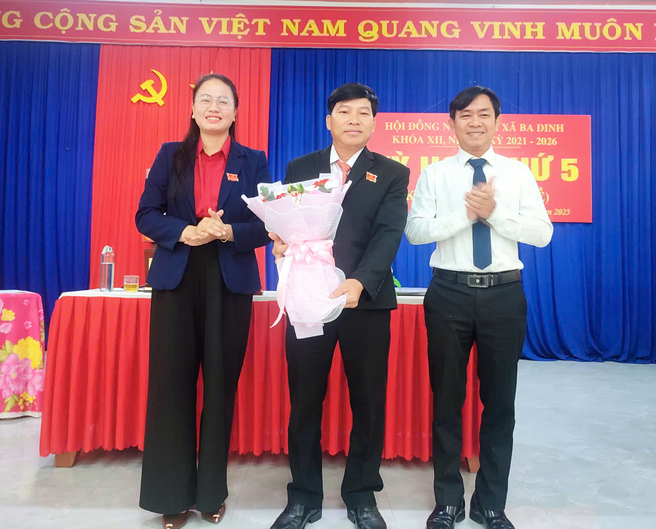 Kỳ họp cũng tiến hành đầy đủ quy trình bầu bổ sung chức danh Phó Chủ tịch HĐND xã. Theo đó kỳ họp đã thực hiện bỏ phiếu kín và thống nhất bầu đồng chí Phạm Văn Phương, Phó Trưởng Ban Kinh tế – Ngân sách, giữ chức vụ Phó Chủ tịch HĐND xã Ba Dinh (Với số phiếu đạt tỷ lệ 86% (31/36 phiếu so với tỷ lệ đại biểu triệu tập)).