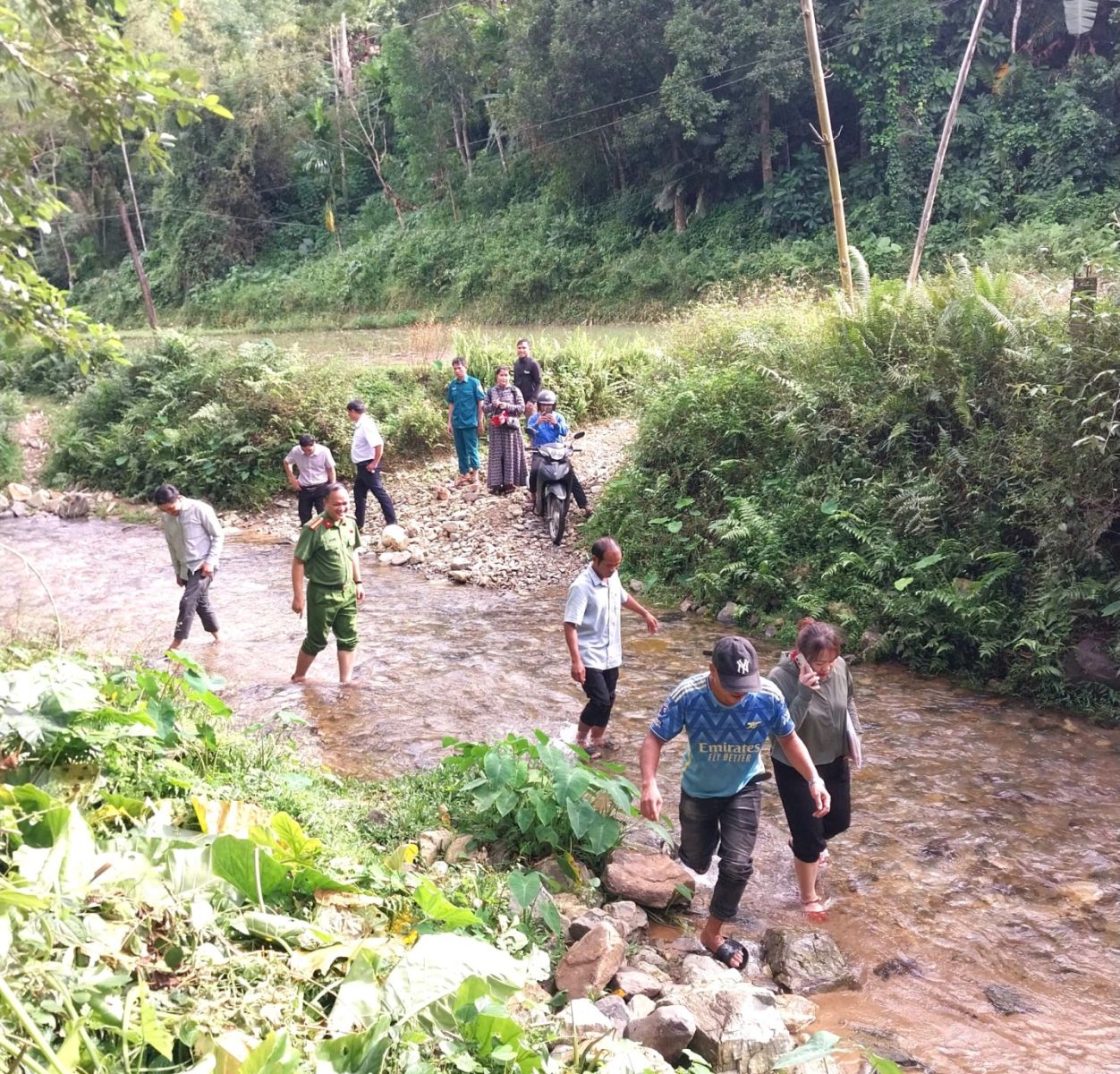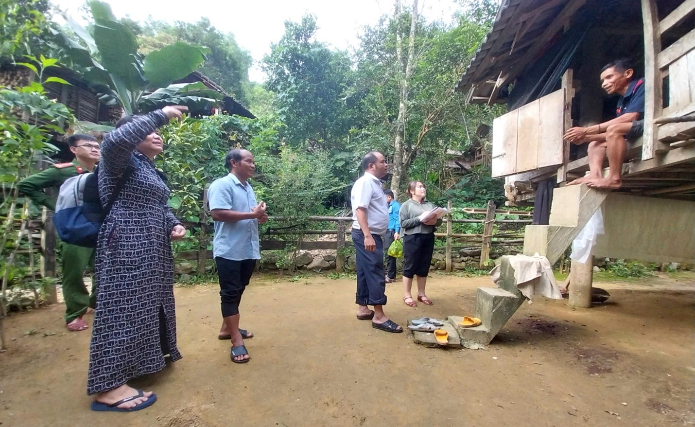 Các ban ngành, đoàn thể băng suối đến xóm Ra Nhong, tổ 1 thôn Gò Khôn tuyền truyền vận động hộ dân di dời đề phòng sạt lỡ xảy ra.
