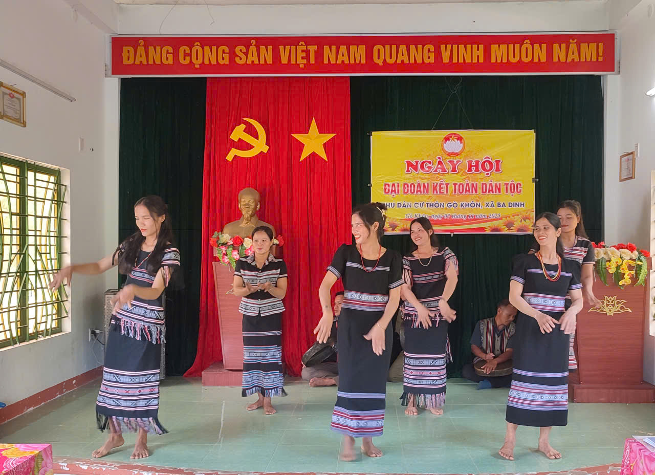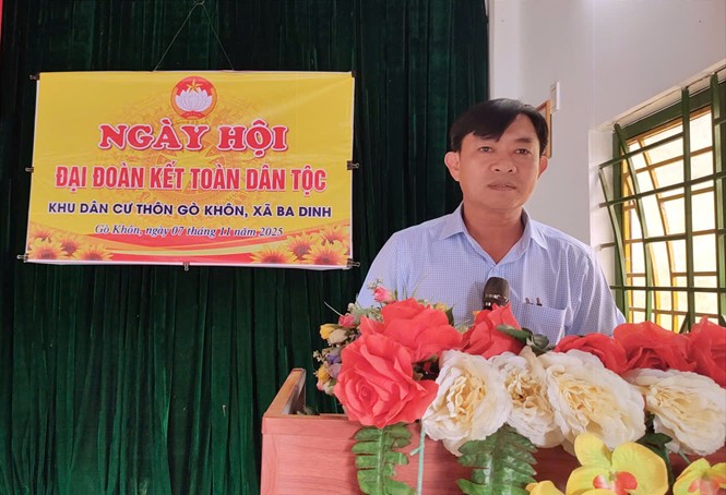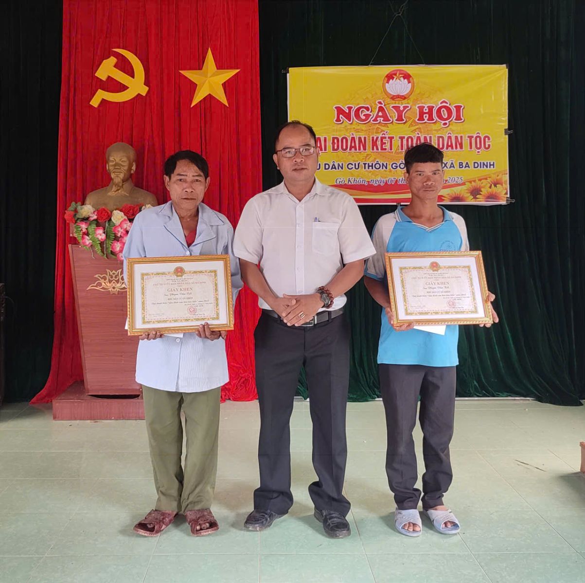 Năm 2025, khu dân cư thôn Gò Khôn, xã Ba Dinh, với 163 hộ dân chủ yếu là đồng bào H’re, đã đạt nhiều kết quả nổi bật trong phát triển kinh tế – xã hội. Người dân tích cực phát triển sản xuất nông nghiệp, chăn nuôi, trồng rừng, duy trì các ngành nghề mộc, vận chuyển và buôn bán nhỏ, góp phần nâng thu nhập bình quân đạt 42 triệu đồng/người/năm. Công tác giáo dục, y tế, văn hóa – văn nghệ, thể dục thể thao được quan tâm; 100% trẻ 6 tuổi vào lớp 1, phong trào khuyến học, hiếu học được duy trì. Nhân dân đóng góp hơn 68 triệu đồng và 383 công lao động làm đường bê tông, nạo vét kênh mương, hiến đất xây dựng nông thôn mới; 90% hộ dùng nước hợp vệ sinh, 159/163 hộ có nhà tiêu hợp chuẩn. Phong trào bảo vệ an ninh trật tự, nghĩa vụ quân sự và các hoạt động “tương thân, tương ái”, “Uống nước nhớ nguồn” được thực hiện tốt, góp phần củng cố khối đại đoàn kết toàn dân trong cộng đồng.