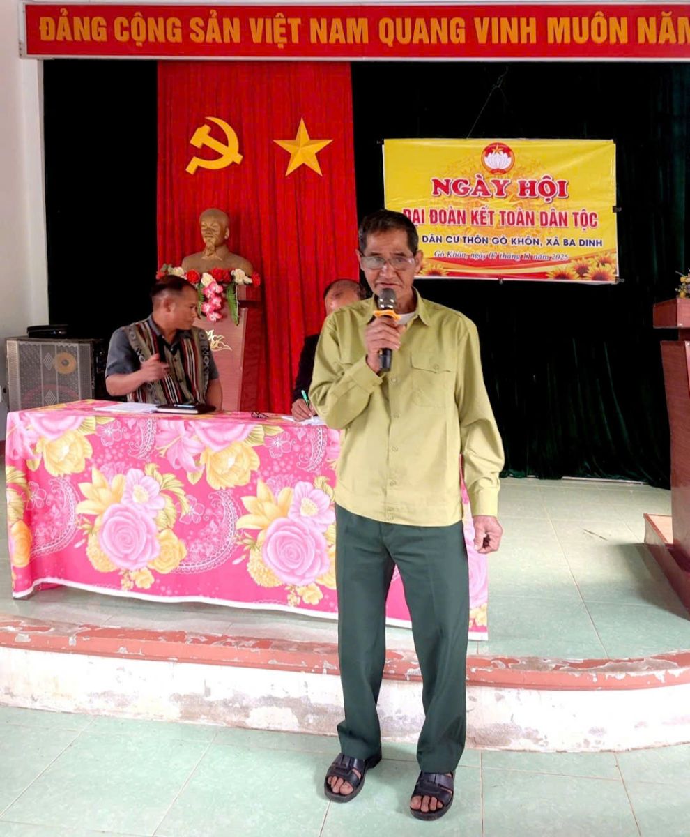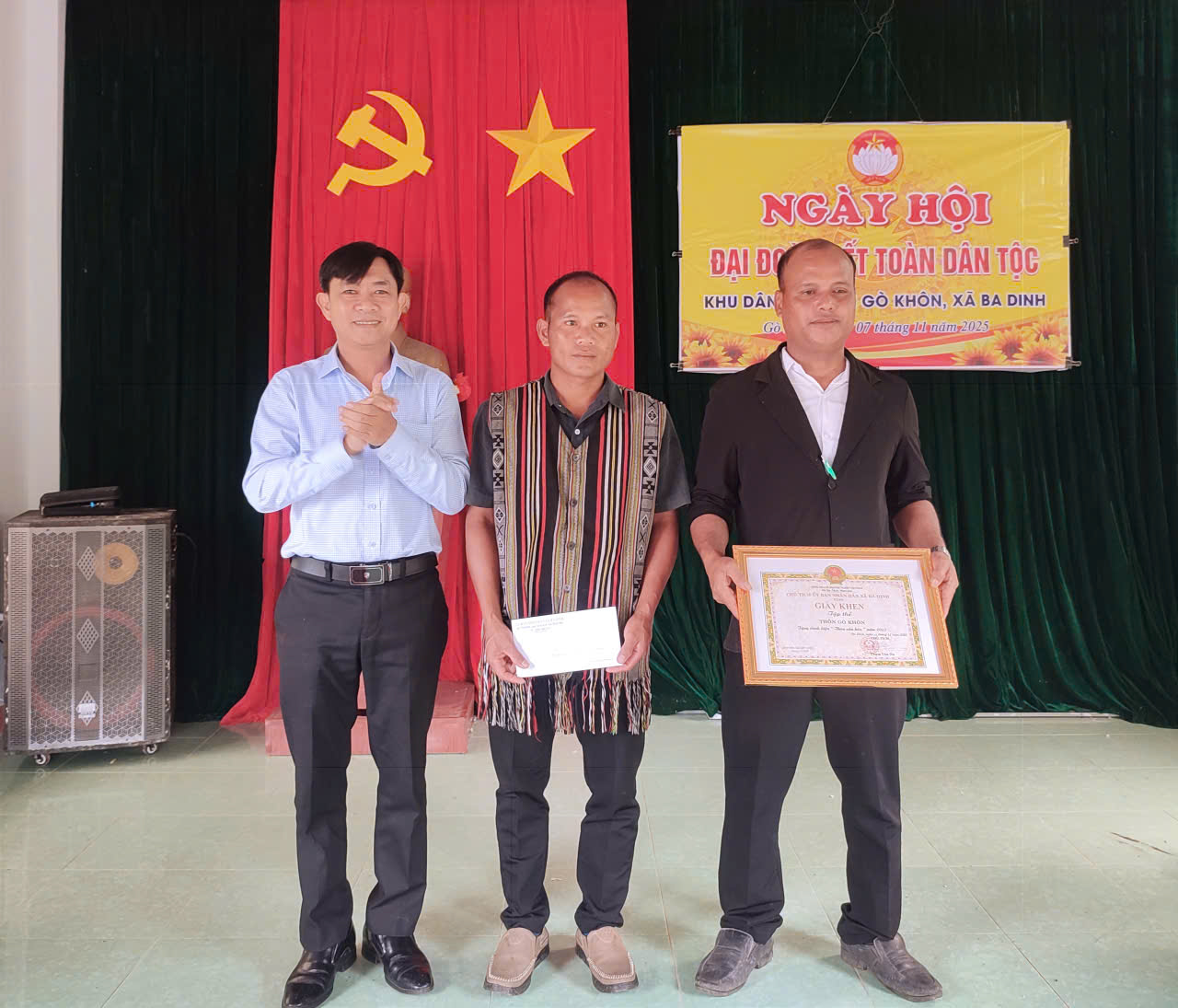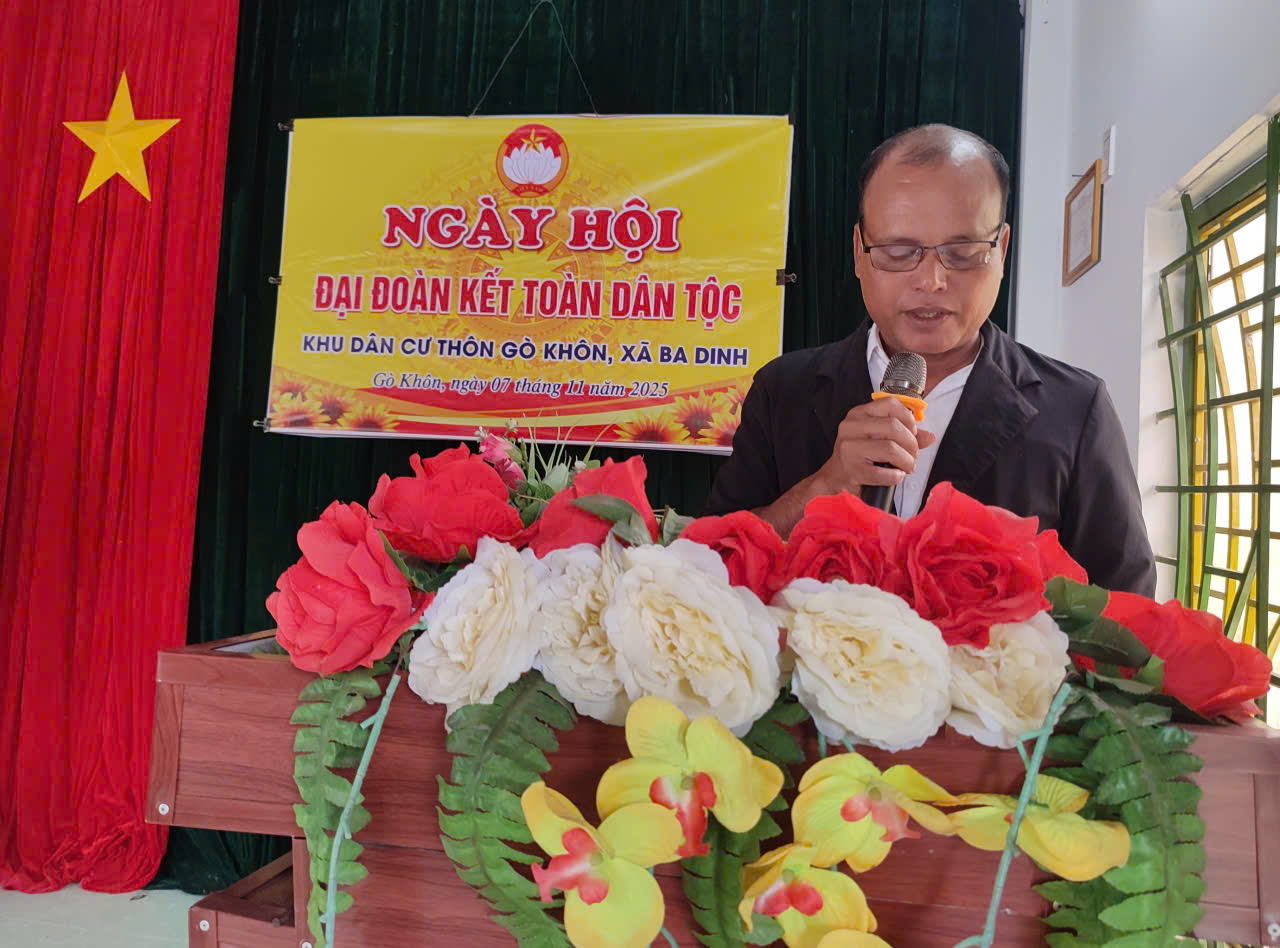 Năm 2025, khu dân cư thôn Gò Khôn, xã Ba Dinh, với 163 hộ dân chủ yếu là đồng bào H’re, đã đạt nhiều kết quả nổi bật trong phát triển kinh tế – xã hội. Người dân tích cực phát triển sản xuất nông nghiệp, chăn nuôi, trồng rừng, duy trì các ngành nghề mộc, vận chuyển và buôn bán nhỏ, góp phần nâng thu nhập bình quân đạt 42 triệu đồng/người/năm. Công tác giáo dục, y tế, văn hóa – văn nghệ, thể dục thể thao được quan tâm; 100% trẻ 6 tuổi vào lớp 1, phong trào khuyến học, hiếu học được duy trì. Nhân dân đóng góp hơn 68 triệu đồng và 383 công lao động làm đường bê tông, nạo vét kênh mương, hiến đất xây dựng nông thôn mới; 90% hộ dùng nước hợp vệ sinh, 159/163 hộ có nhà tiêu hợp chuẩn. Phong trào bảo vệ an ninh trật tự, nghĩa vụ quân sự và các hoạt động “tương thân, tương ái”, “Uống nước nhớ nguồn” được thực hiện tốt, góp phần củng cố khối đại đoàn kết toàn dân trong cộng đồng.