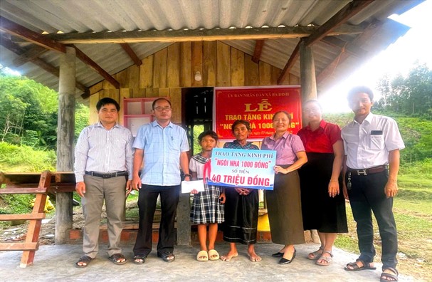Tại buổi lễ, đại diện lãnh đạo UBND xã Ba Dinh cùng các đơn vị liên quan đã trao kinh phí và phần quà hỗ trợ cho gia đình em Phạm Thị Ngọc Nguy. Căn nhà mới tuy nhỏ bé nhưng là mái ấm đầy tình yêu thương, thể hiện tinh thần tương thân tương ái, “lá lành đùm lá rách”, góp phần lan tỏa những giá trị nhân văn tốt đẹp trong cộng đồng.
