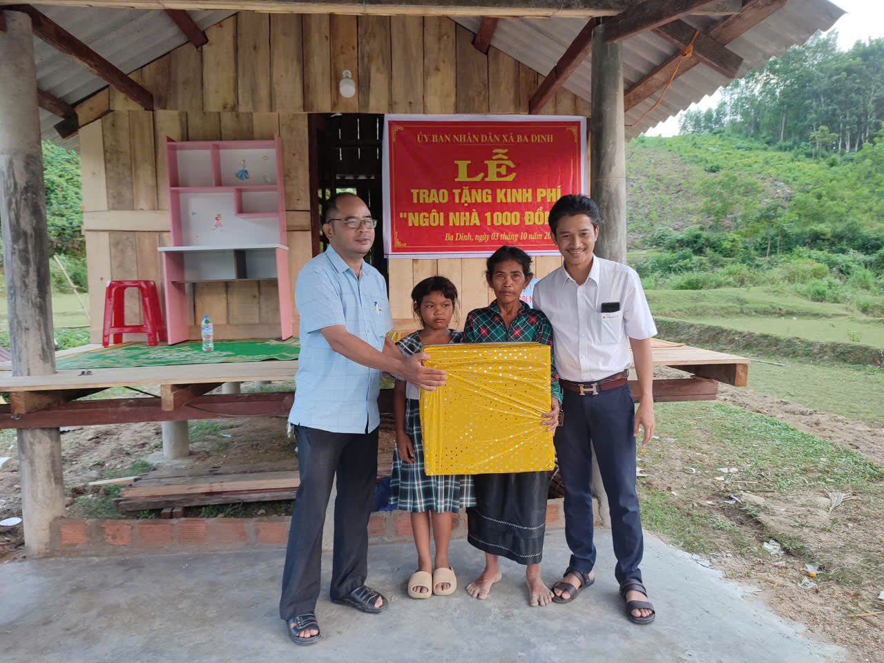 Chiều ngày 03/10/2025, Ủy ban nhân dân xã Ba Dinh đã tổ chức Lễ trao tặng kinh phí “Ngôi nhà 1000 đồng” cho gia đình em Phạm Thị Ngọc Nguy, học sinh lớp 4A, Trường Tiểu học Ba Dinh, trú tại thôn Kà La, xã Ba Dinh, tỉnh Quảng Ngãi.