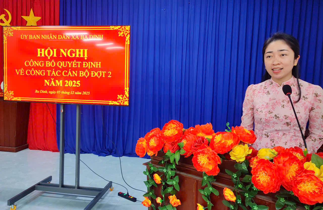 Ủy ban nhân dân xã Ba Dinh tổ chức Hội nghị công bố các quyết định về công tác cán bộ đợt 2 năm 2025