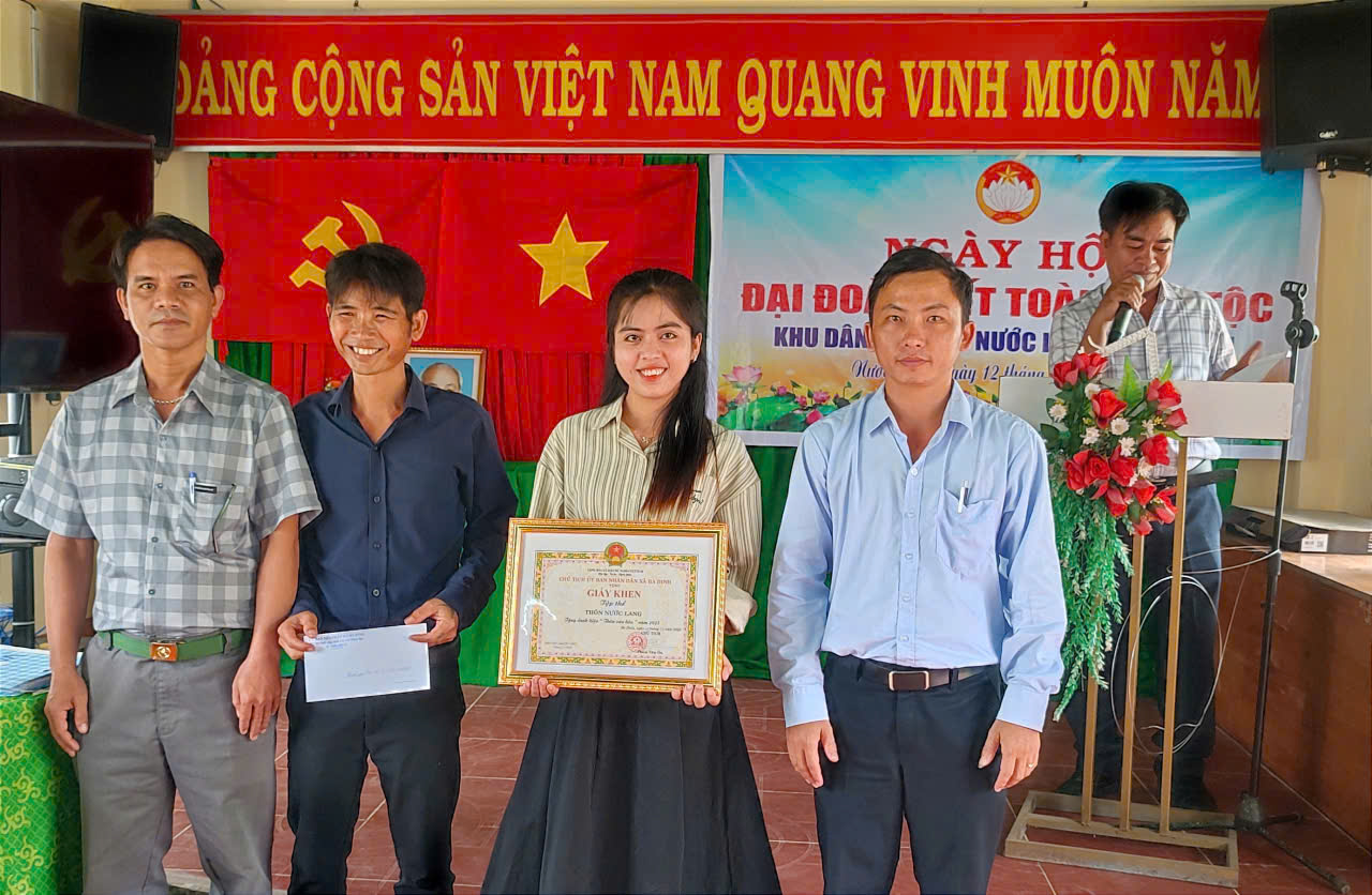 Nhân dịp này, Ban Công tác Mặt trận khu dân cư đã công bố Quyết định của Chủ tịch UBND xã về Công nhận thôn văn hóa đối với thôn Nước Lang và Quyết định công nhận danh hiệu “ Gia đình văn hóa ” năm 2025, tặng quà cho hai gia đình tiêu biểu đạt danh hiệu “ Gia đình văn hóa ” 3 năm liền, mỗi xuất quà trị giá 500.000 ngàn đồng và phát động phong trào thi đua năm 2026.