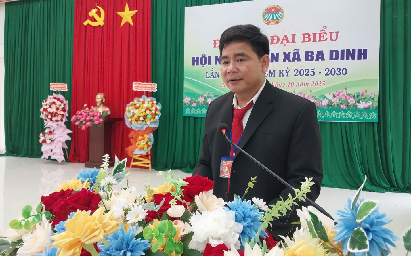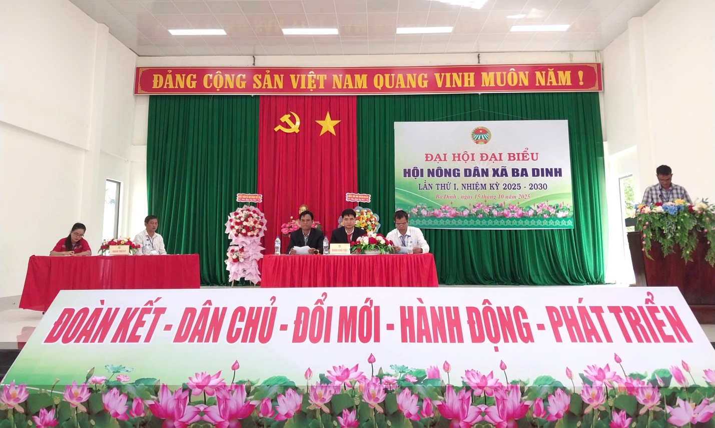 Đại hội cũng thông qua quyết định Chỉ định Ban Chấp hành Hội Nông dân xã Ba Dinh khóa I, nhiệm kỳ 2025-2030, gồm 19 đồng chí tiêu biểu cho phẩm chất chính trị, ý chí, khát vọng và trí tuệ của cán bộ, hội viên nông dân trong xã. Đồng chí Phạm Văn Cú, Đảng ủy viên, Phó Chủ tịch Ủy ban MTTQVN xã, Ủy viên Ban Thường vụ Hội Nông dân xã giữ chức Chủ tịch Hội Nông dân xã khóa I, nhiệm kỳ 2025 - 2030; đồng chí Phạm Văn Tày, Chuyên viên Ban xây dựng đảng, Ủy viên Ban Thường vụ Hội Nông dân xã giữ chức Phó Chủ tịch Hội Nông dân xã Ba Dinh khóa I, nhiệm kỳ 2025-2030./.